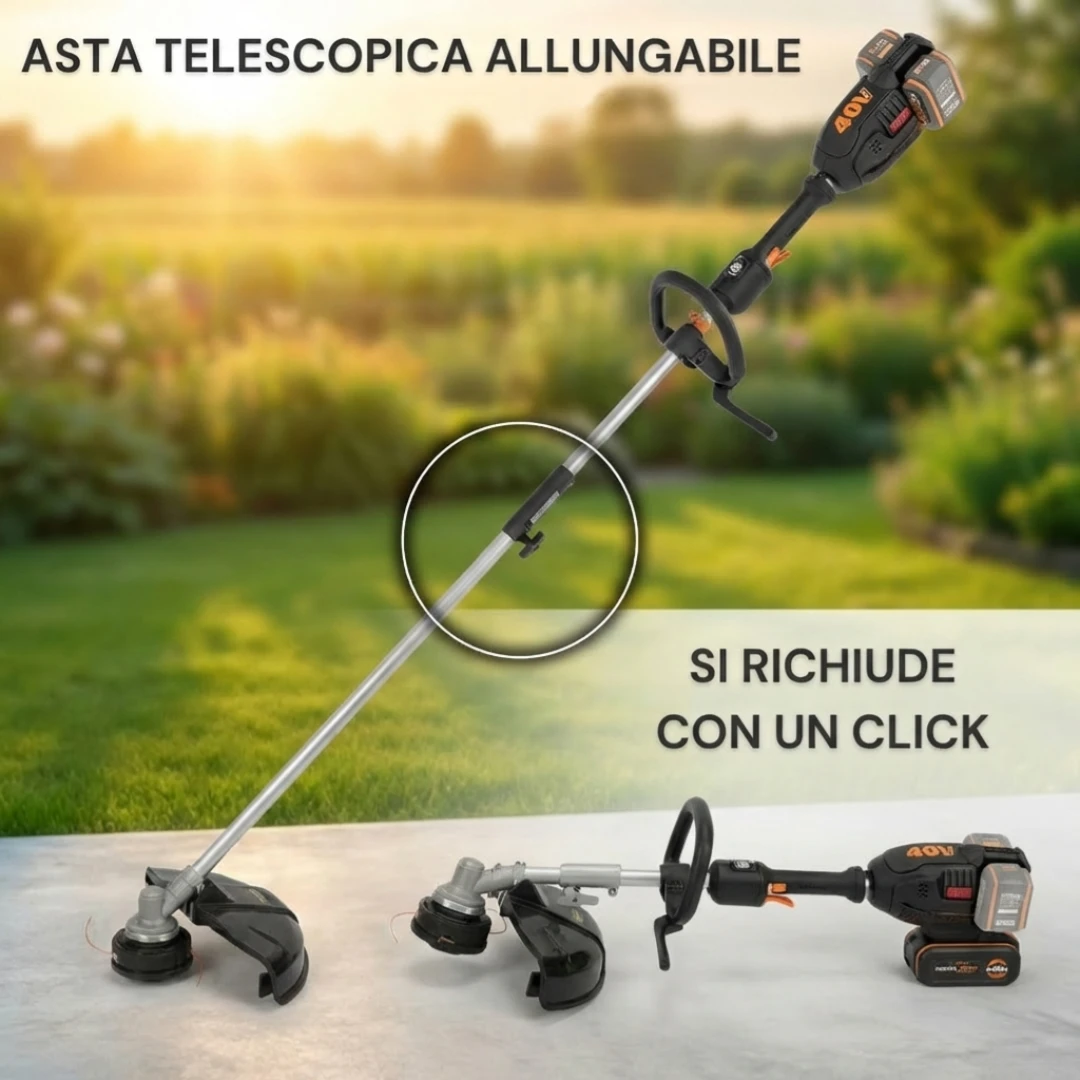 Premi il pulsante e il motore brushless fa il resto: potenza costante dall'inizio alla fine, anche sulla vegetazione più dura. Niente spazzole da cambiare, meno vibrazioni e meno rumore. Più tempo a lavorare, zero tempo in manutenzione.