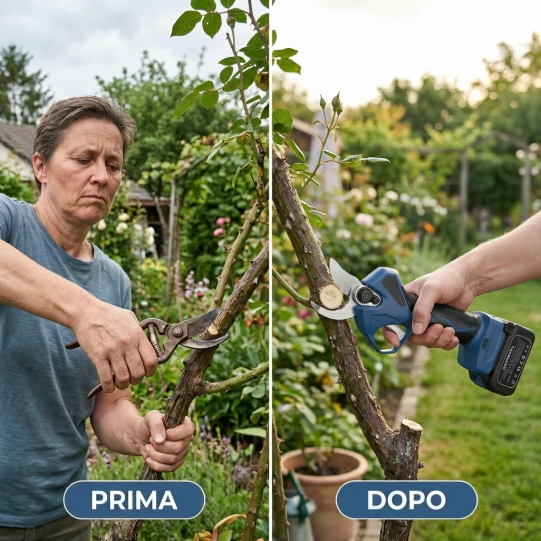 Ho un uliveto con 40 piante e ogni anno spendevo 200 euro dal potatore. Quest'anno ho fatto tutto da solo in due weekend. La motosega taglia rami di 12 cm senza sforzo, la cesoia per i rametti piccoli è una goduria. Le 3 batterie durano tranquillamente tutta la mattina.