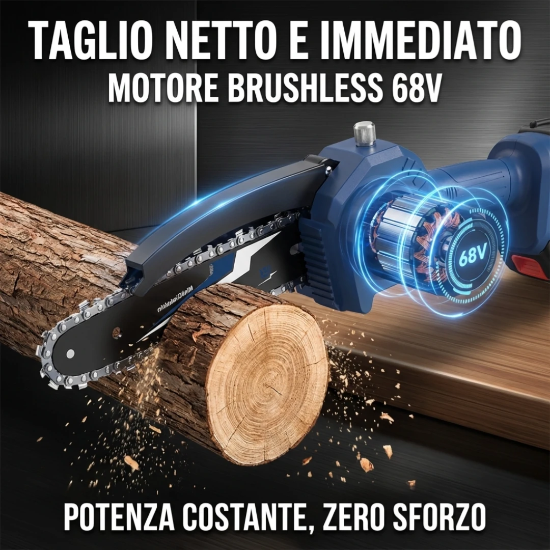 Coppia costante, nessun surriscaldamento, nessuno sforzo. Il motore brushless 68V permette costanza dal primo all'ultimo taglio e le lame in acciaio SKS sono pensate per durare nel tempo.